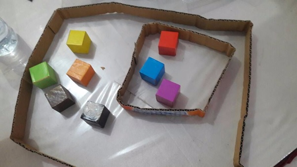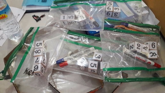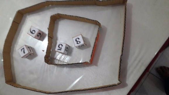Guru mengingatkan kembali tentang himpunan bagian dengan memperagakan media pembelajaran yang sudah disiapkan.